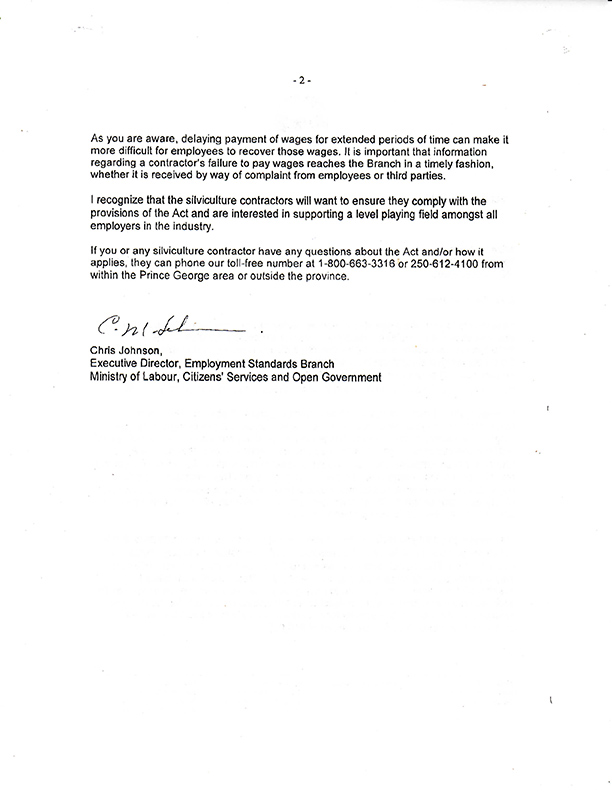 If you're an experienced planter and you think this is all a waste of time, remember that this process HAS helped a number of planters claim the wages that are rightfully theirs. And if you think that you shouldn't ask your company for the money that you are owed, either because you're nervous about it, or you want to "protect" your company, remember one positive thing about these laws. They are designed to protect workers. Companies who pay lower piece-rates than their competitors will have to pay more money in top-up to their employees. This will force them to raise their bids in the future, and higher bids mean HIGHER WAGES FOR EXPERIENCED PLANTERS. A company that hires a lot of rookies cannot get around this system by giving less hours to inexperienced planters. The only way for companies to prevent being obligated to provide top-ups is to RAISE THE PIECE RATES so the slow planters can earn more than minimum wage. And when piece rates go up, vets make more money. These employment standards will do more to benefit vets than any union ever could.