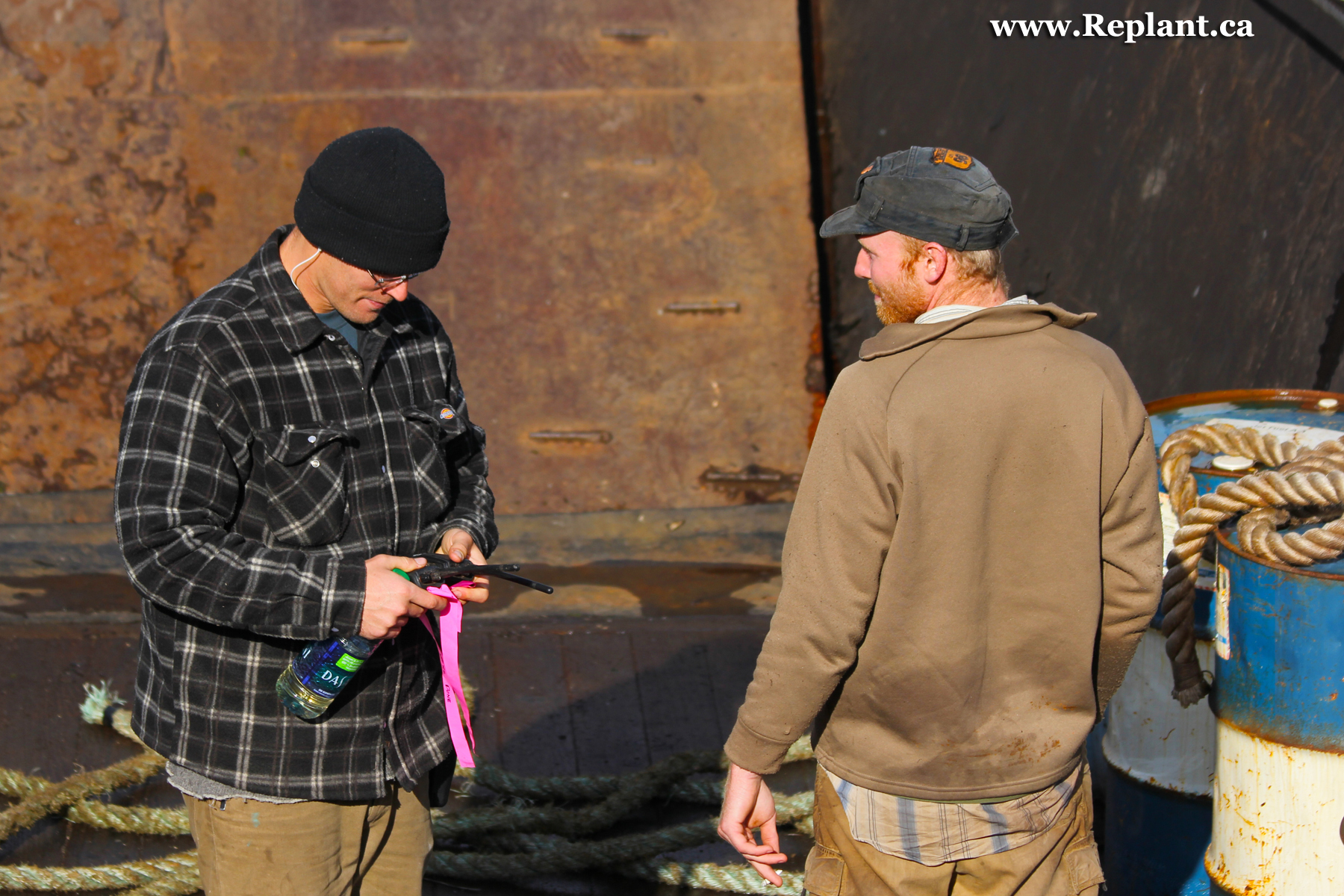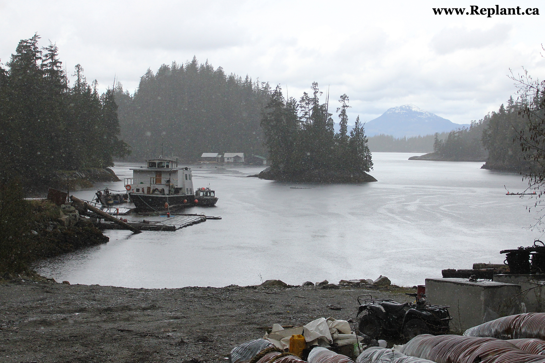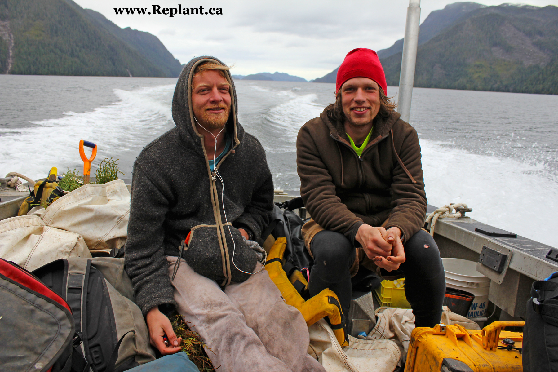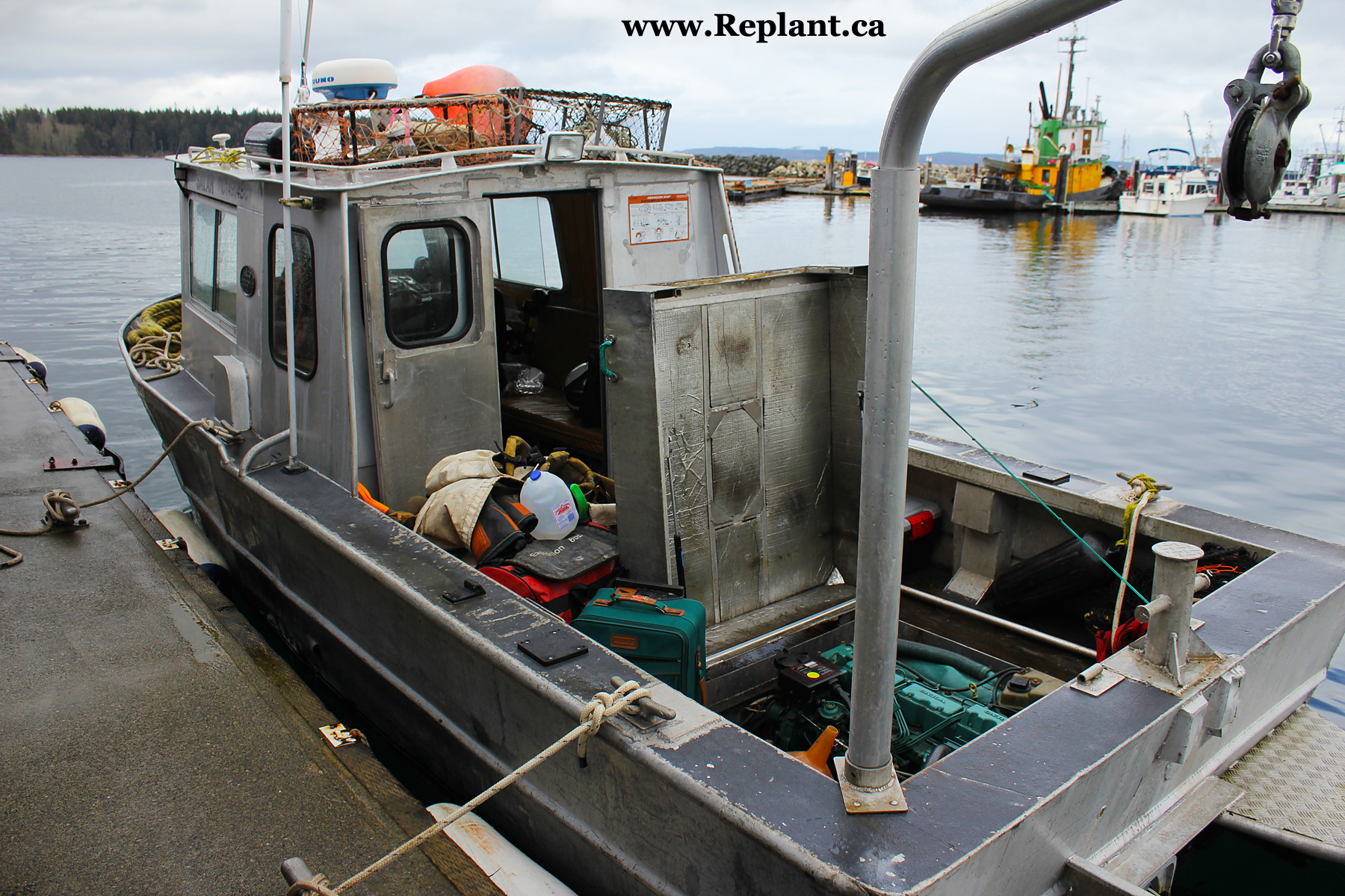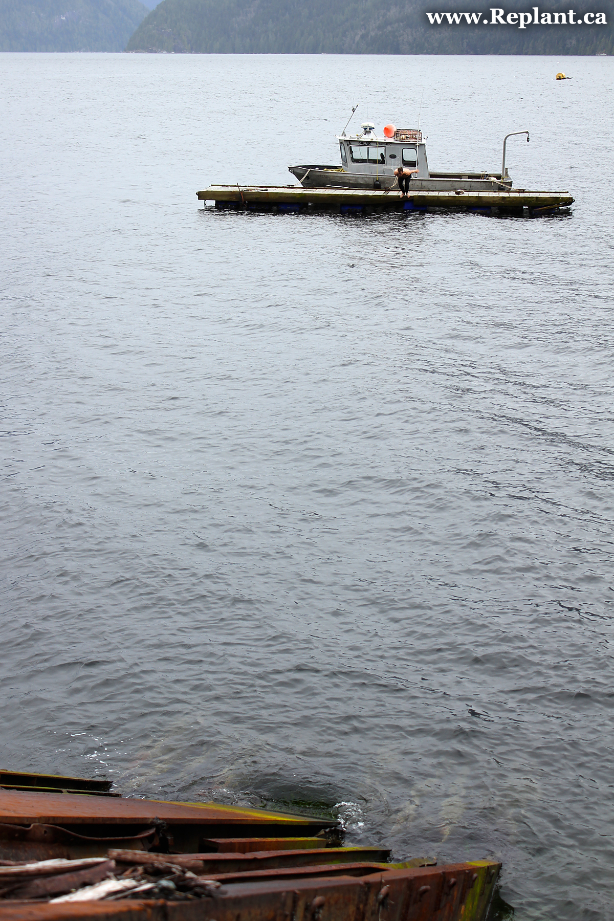 The foreman always gets to do the fun stuff. Jordan had to tie the boat up and swim to shore after dropping all the planters off on the shore, since the old dock had collapsed. The North Pacific water would have made for a rather refreshing swim at that time of year.