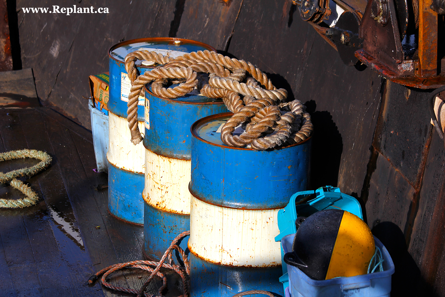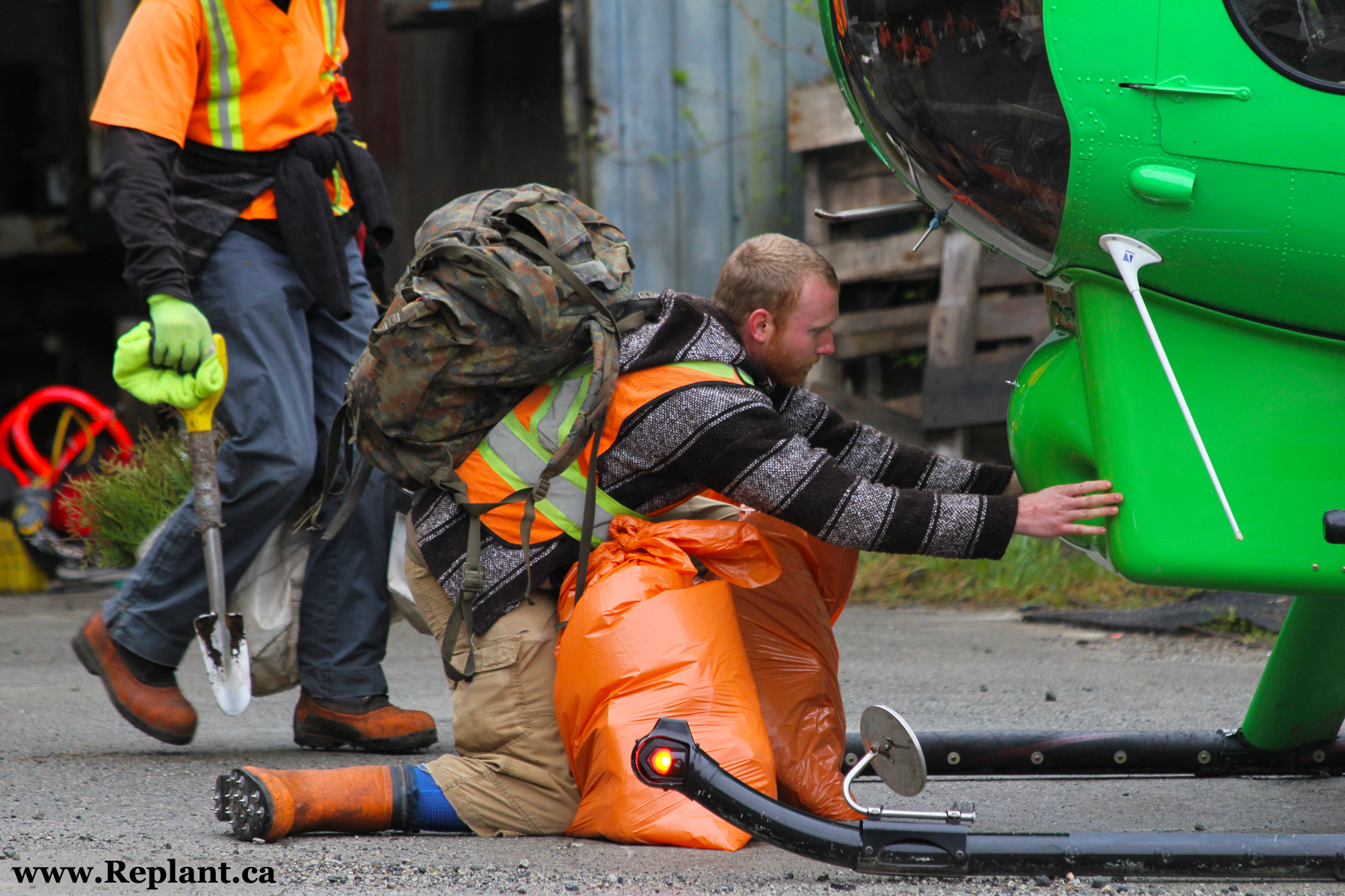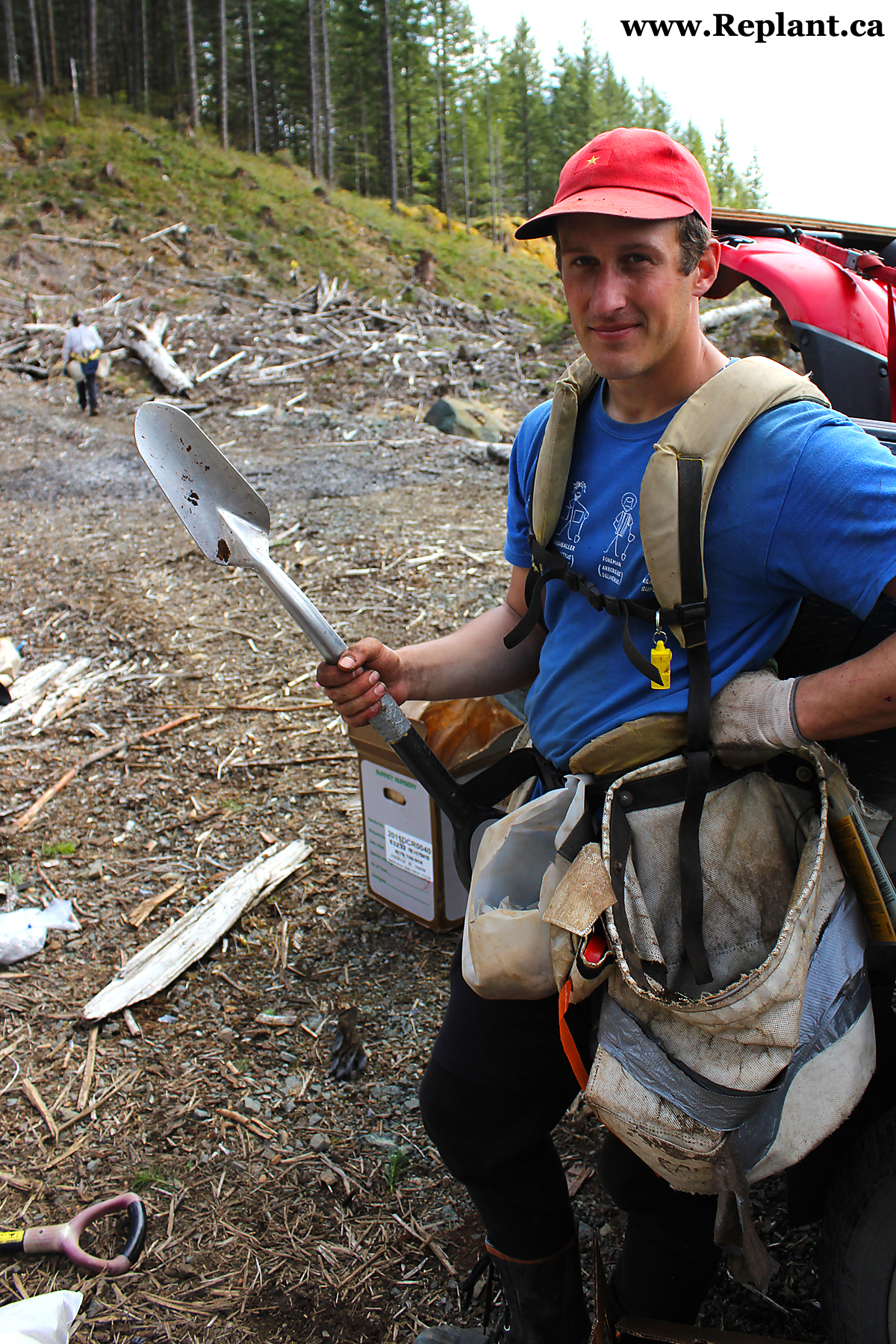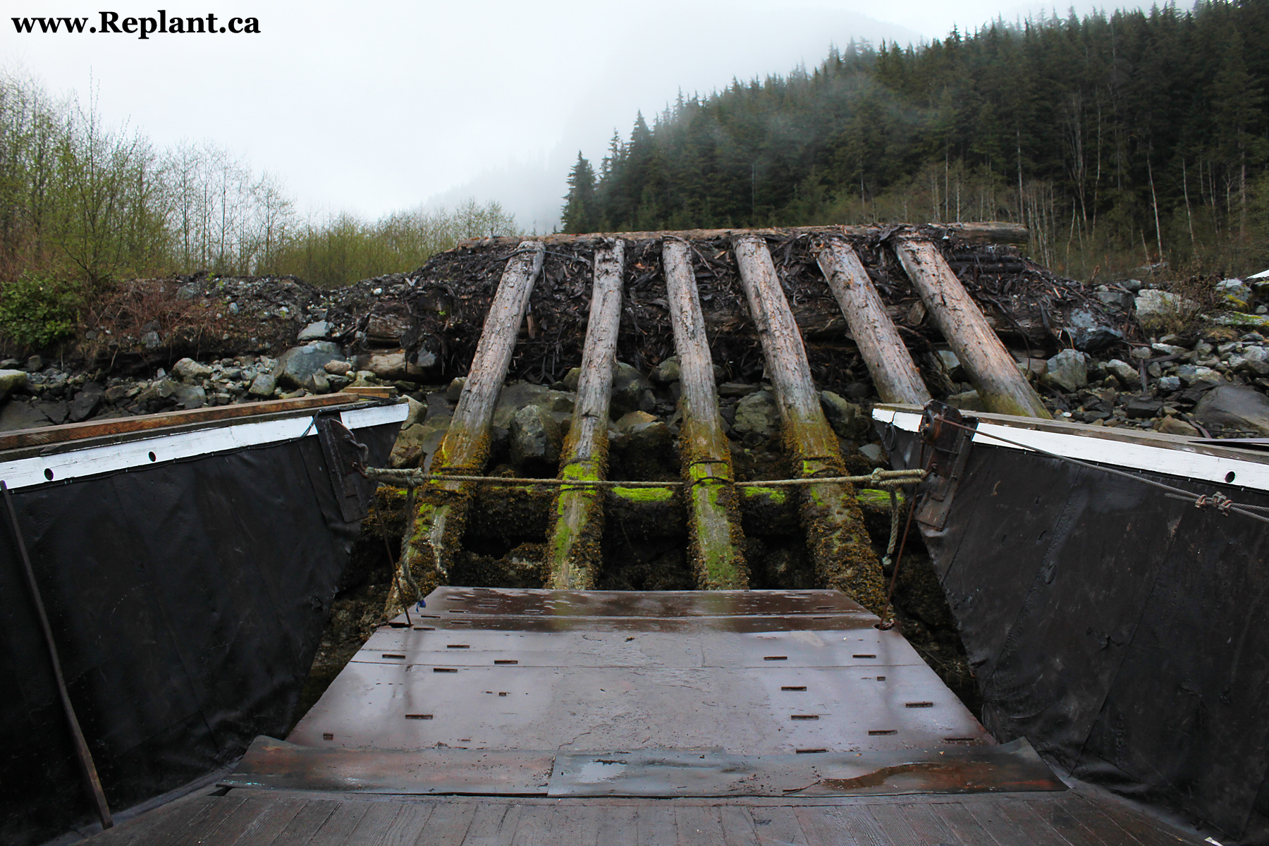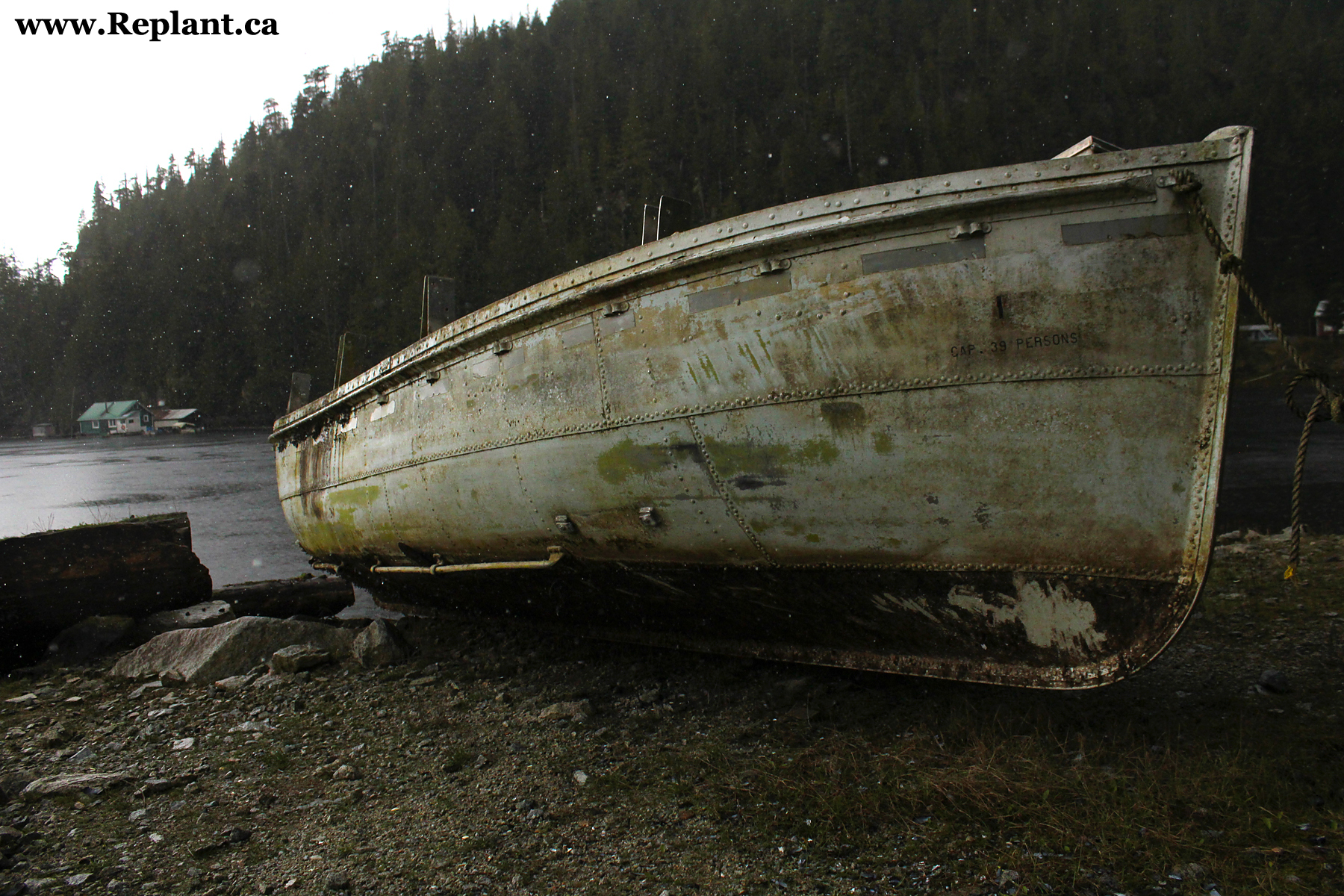 The foreman always gets to do the fun stuff. Jordan had to tie the boat up and swim to shore after dropping all the planters off on the shore, since the old dock had collapsed. The North Pacific water would have made for a rather refreshing swim at that time of year.