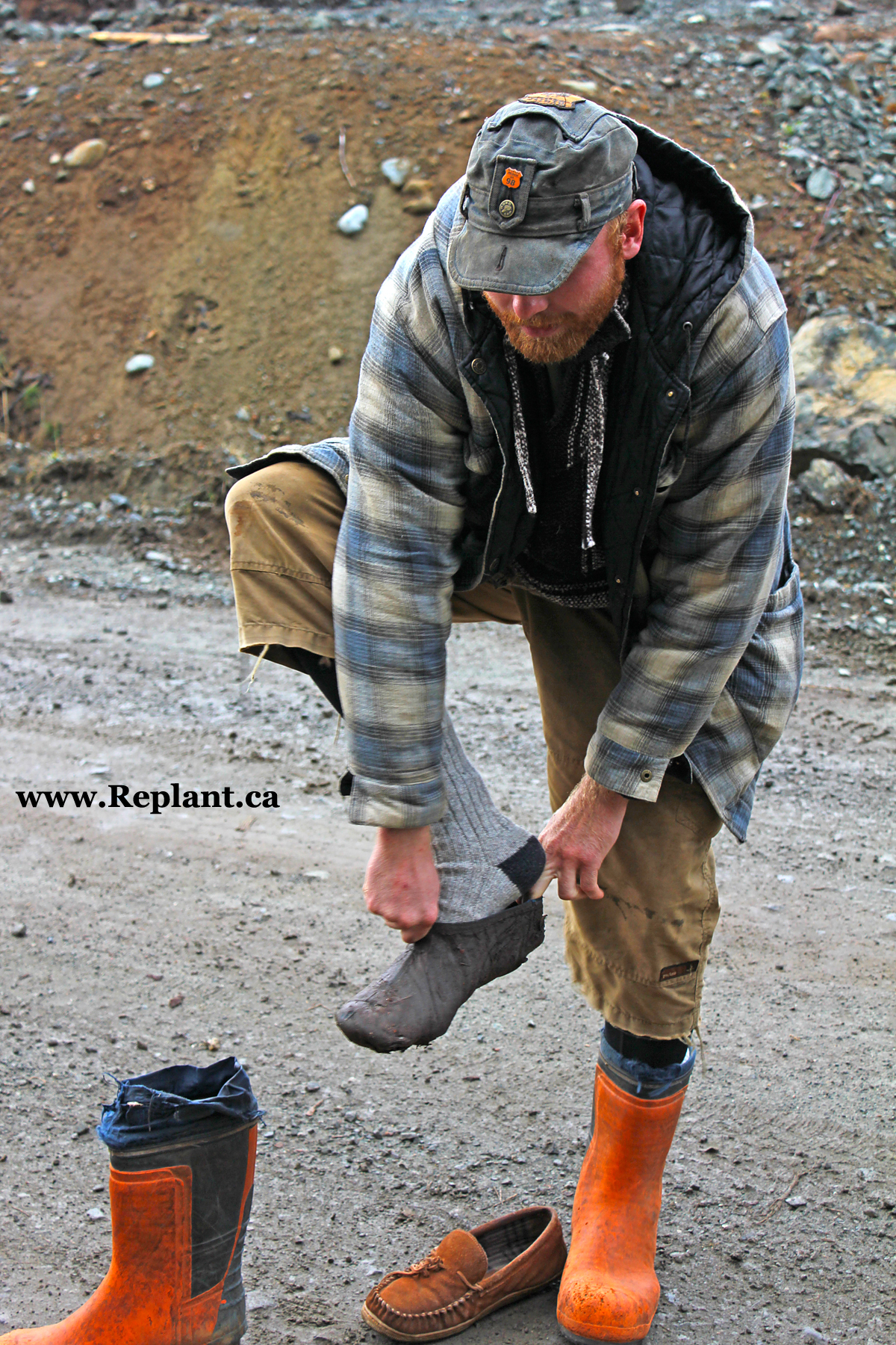A little bit dirty at the end of a day of planting. But more wet than dirty - the constant rain keeps some of the mud off.